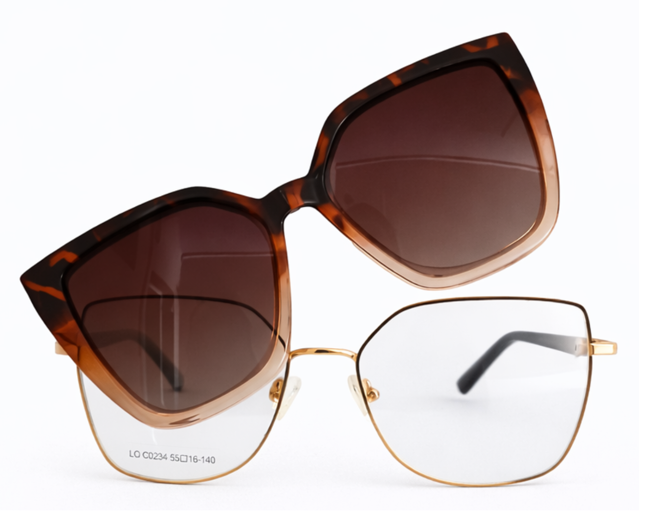 Armação clipon da Ótica Outlet transforma seus óculos comuns em óculos de sol com facilidade, ideal para lentes para longe, perto e multifocal.