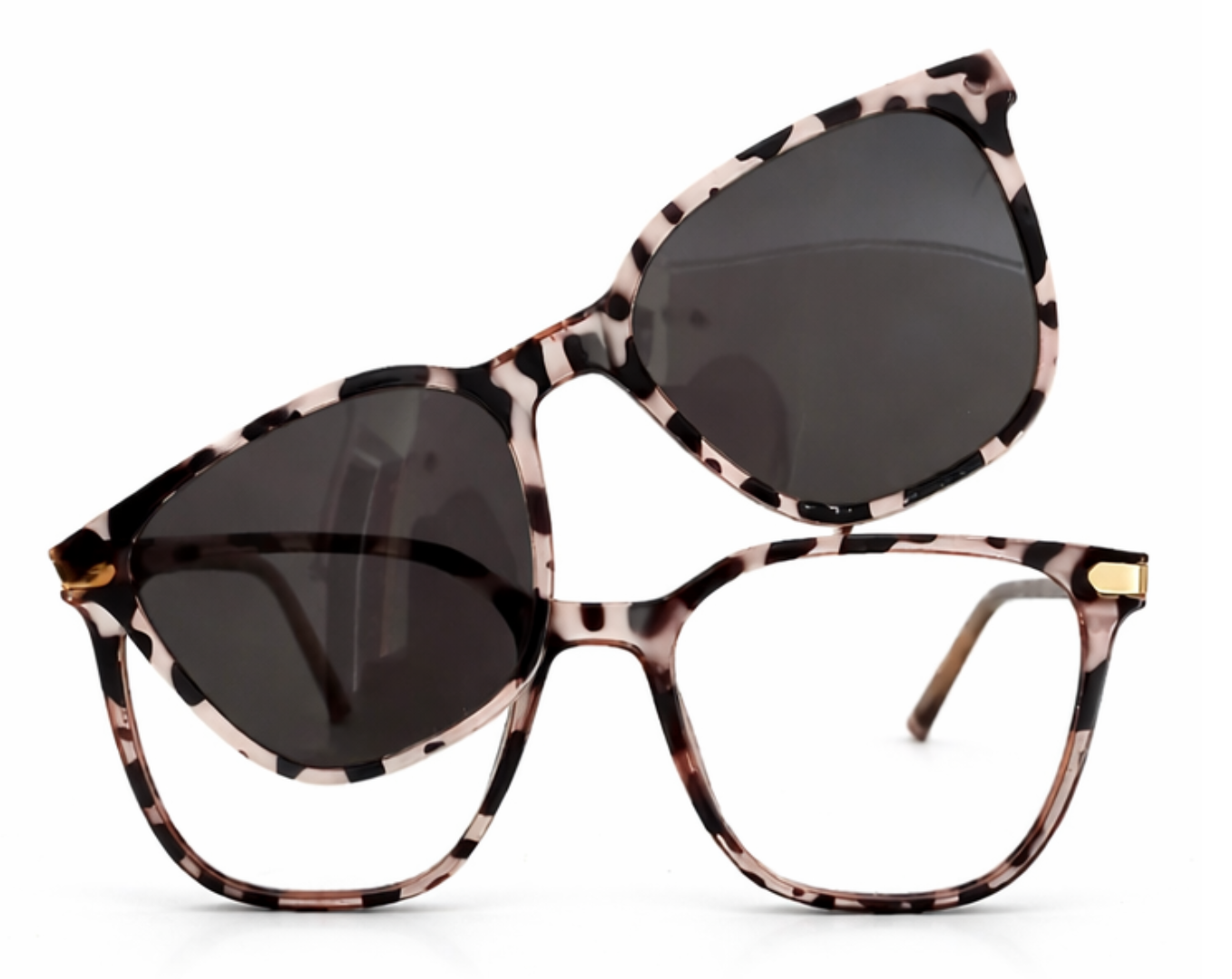 Armação clipon da Ótica Outlet transforma seus óculos comuns em óculos de sol com facilidade, ideal para lentes para longe, perto e multifocal.