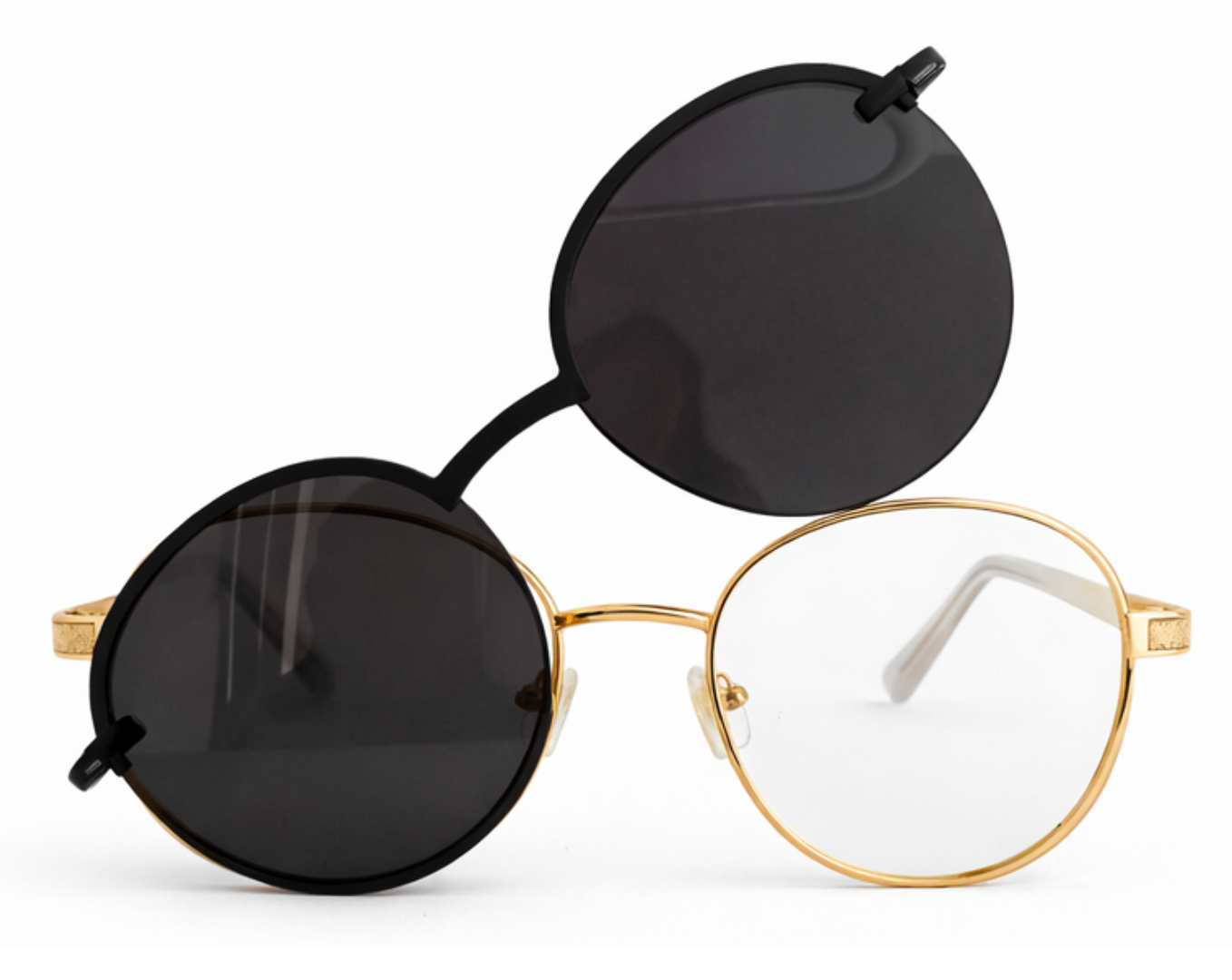 Armação clipon da Ótica Outlet transforma seus óculos comuns em óculos de sol com facilidade, ideal para lentes para longe, perto e multifocal.