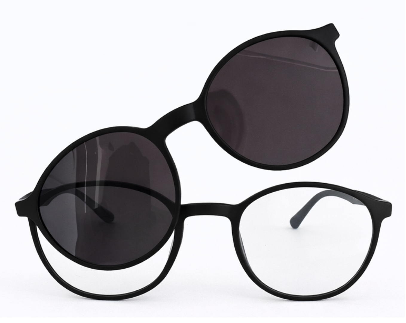 Armação clipon da Ótica Outlet transforma seus óculos comuns em óculos de sol com facilidade, ideal para lentes para longe, perto e multifocal.