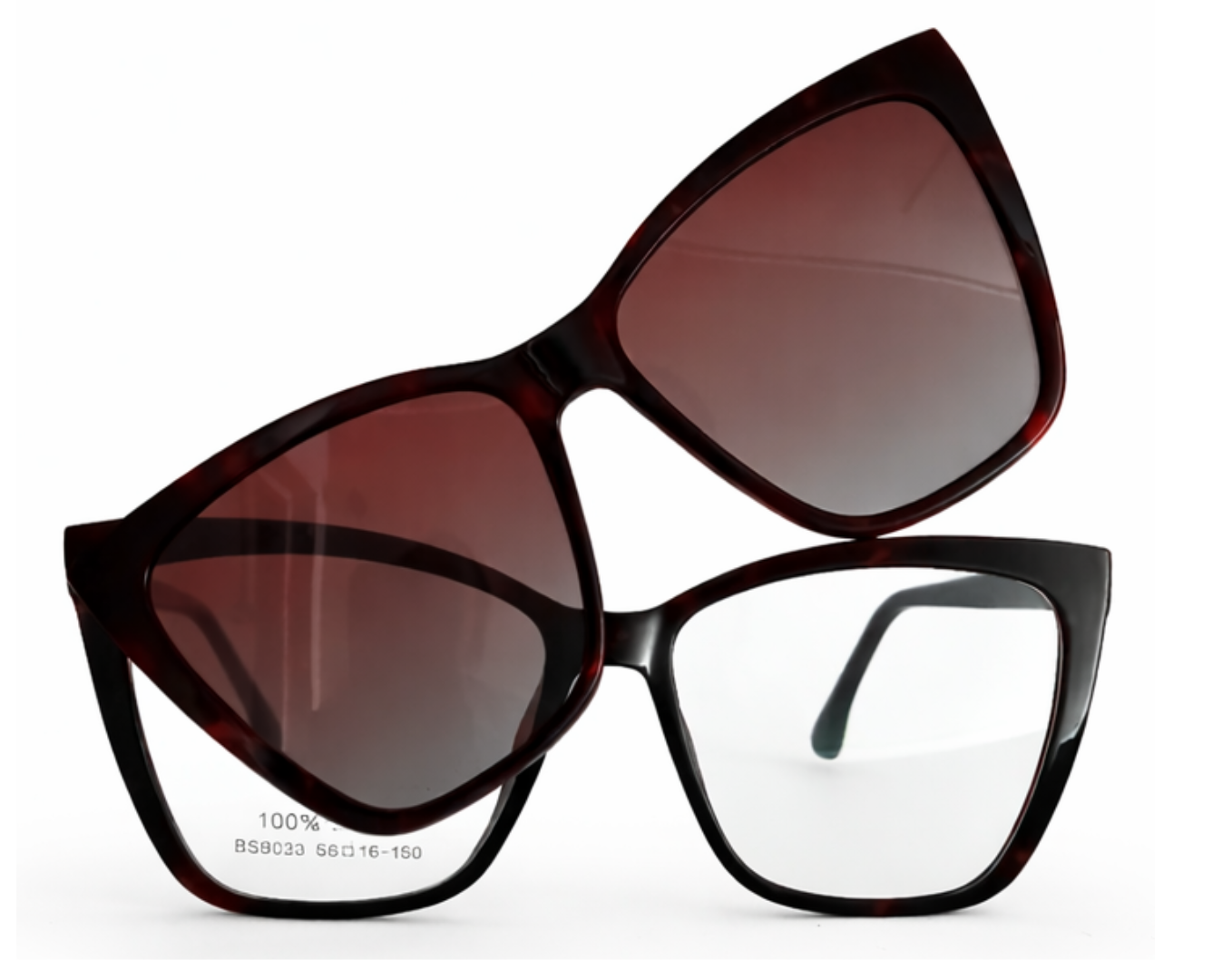 Armação clipon da Ótica Outlet transforma seus óculos comuns em óculos de sol com facilidade, ideal para lentes para longe, perto e multifocal.