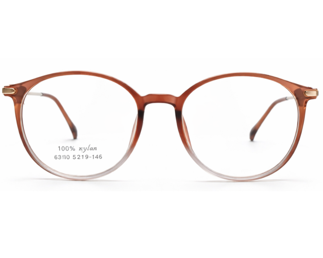 Armação feminina redonda, ideal para lentes de grau variadas, como para longe, perto ou multifocal, oferecida pela Ótica Outlet para conforto e estilo no uso diário.