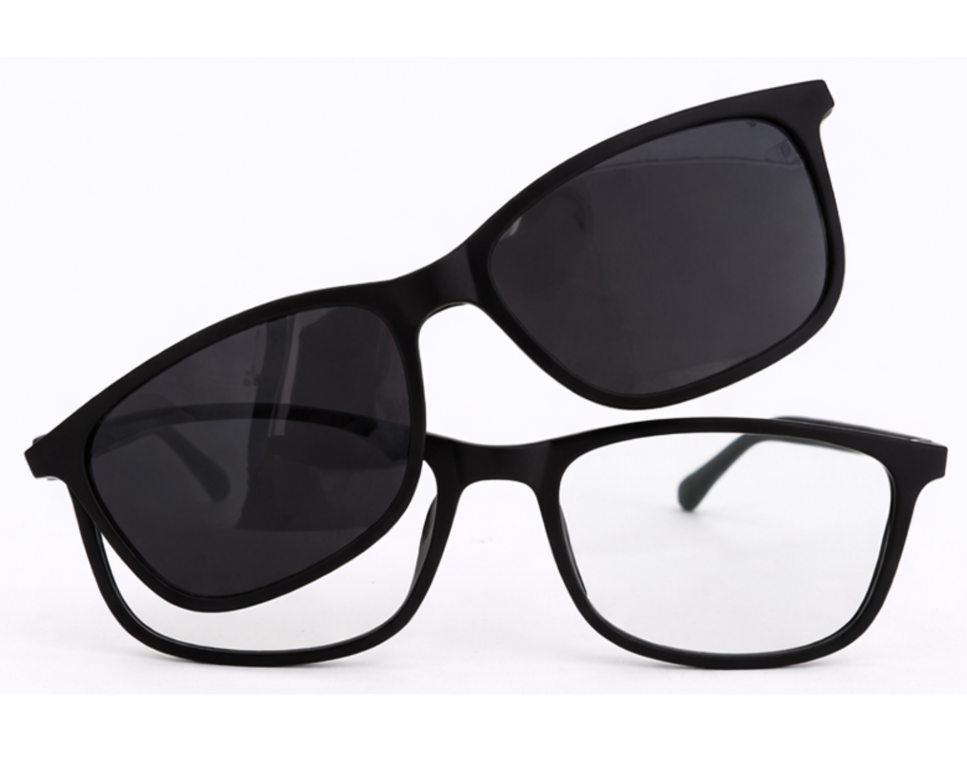 Armação clipon da Ótica Outlet transforma seus óculos comuns em óculos de sol com facilidade, ideal para lentes para longe, perto e multifocal.
