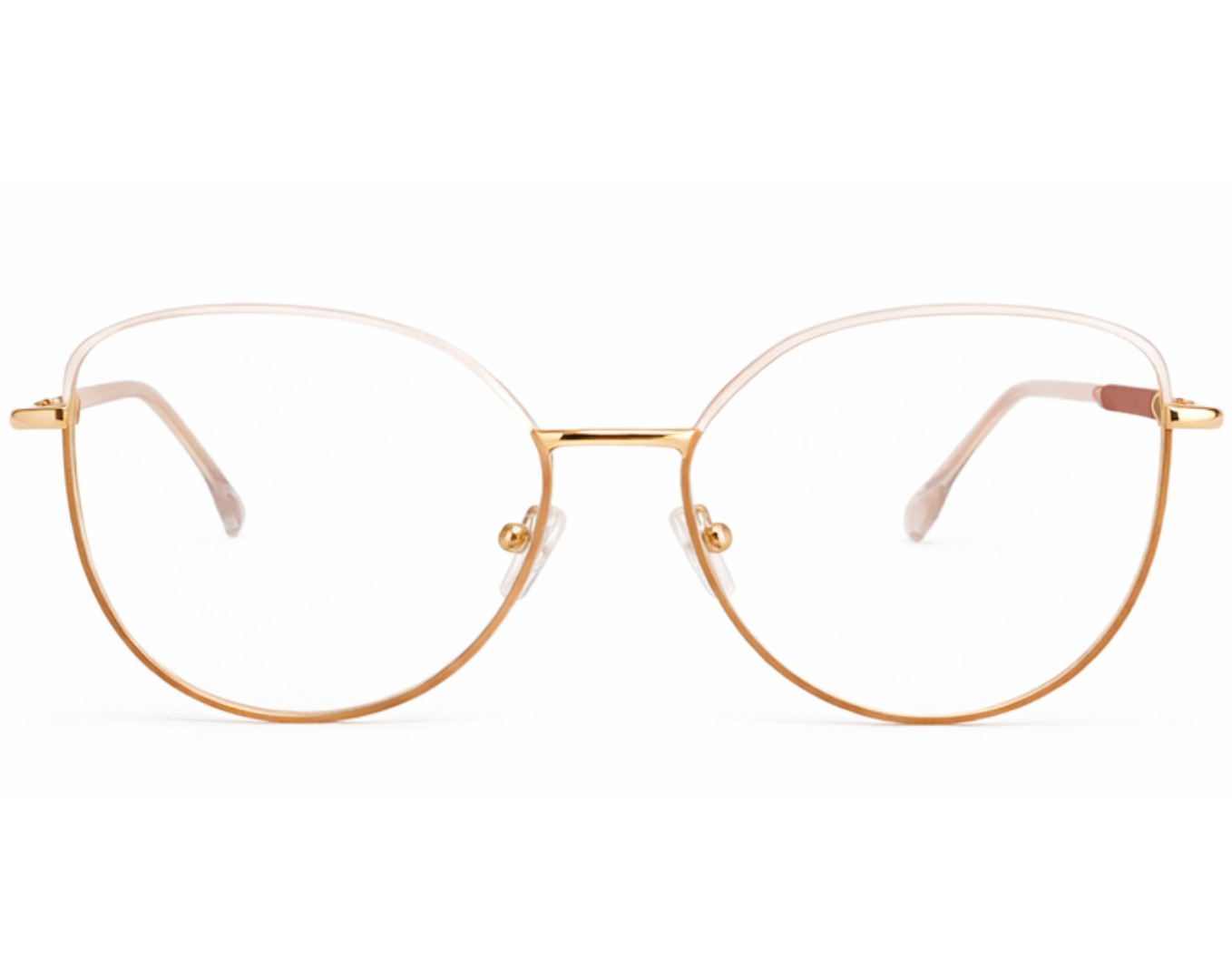 Armações femininas de metal, ideal para quem busca durabilidade e estilo. Compatível com lentes de grau, longe, perto ou multifocal, oferecendo versatilidade para diferentes necessidades visuais.