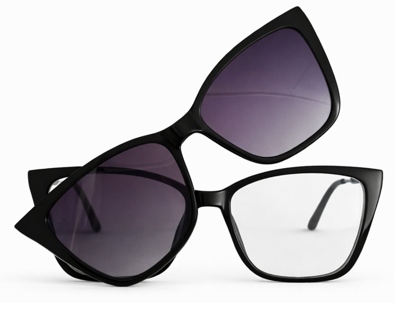 Armação clipon da Ótica Outlet transforma seus óculos comuns em óculos de sol com facilidade, ideal para lentes para longe, perto e multifocal.