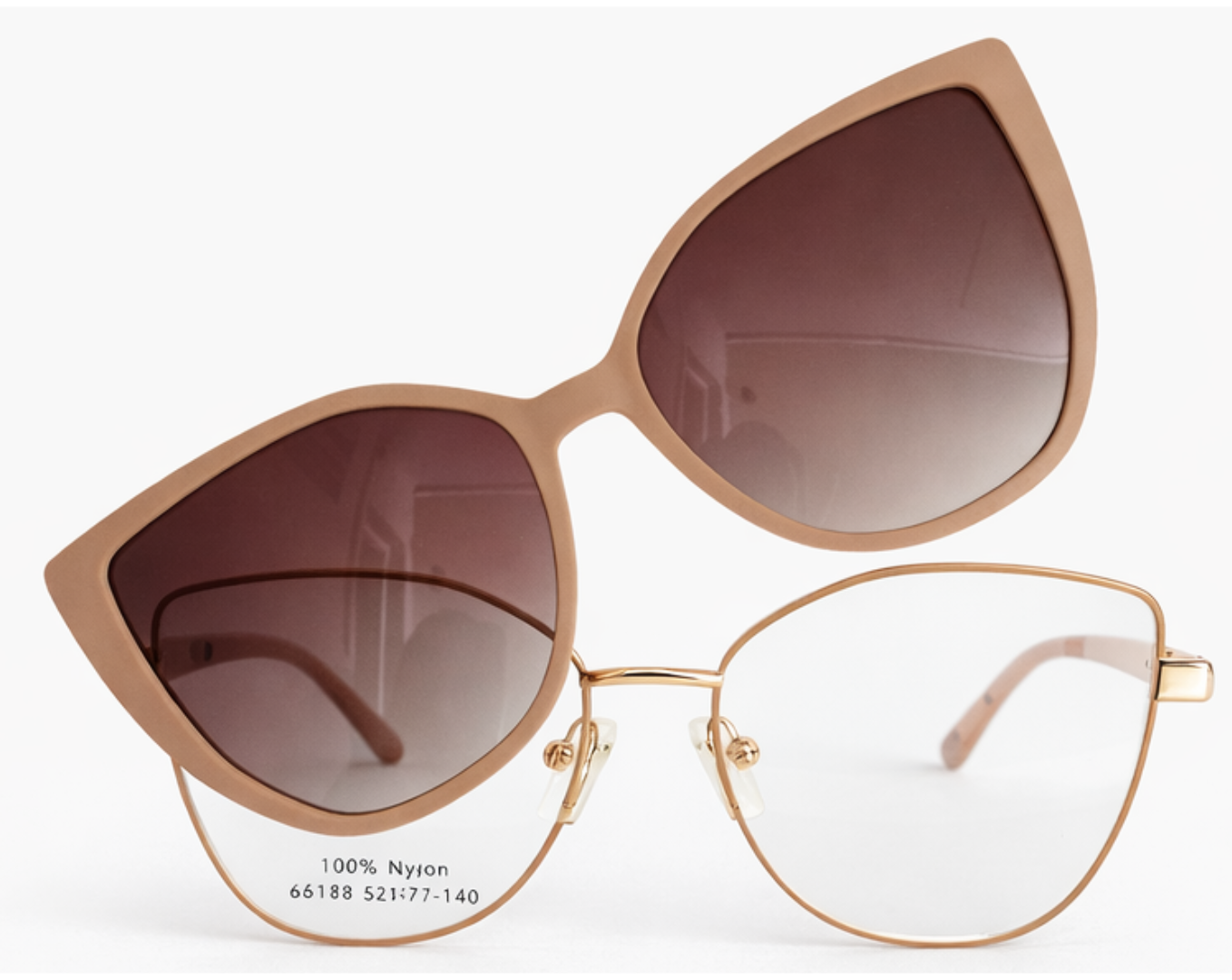 Armação clipon da Ótica Outlet transforma seus óculos comuns em óculos de sol com facilidade, ideal para lentes para longe, perto e multifocal.