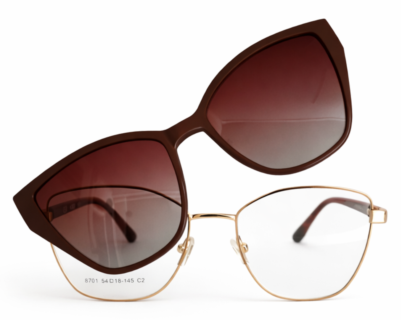 Armação clipon da Ótica Outlet transforma seus óculos comuns em óculos de sol com facilidade, ideal para lentes para longe, perto e multifocal.