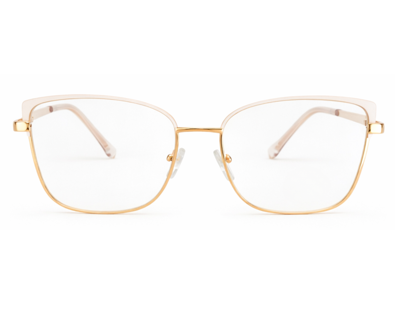 Armações femininas de metal, ideal para quem busca durabilidade e estilo. Compatível com lentes de grau, longe, perto ou multifocal, oferecendo versatilidade para diferentes necessidades visuais.