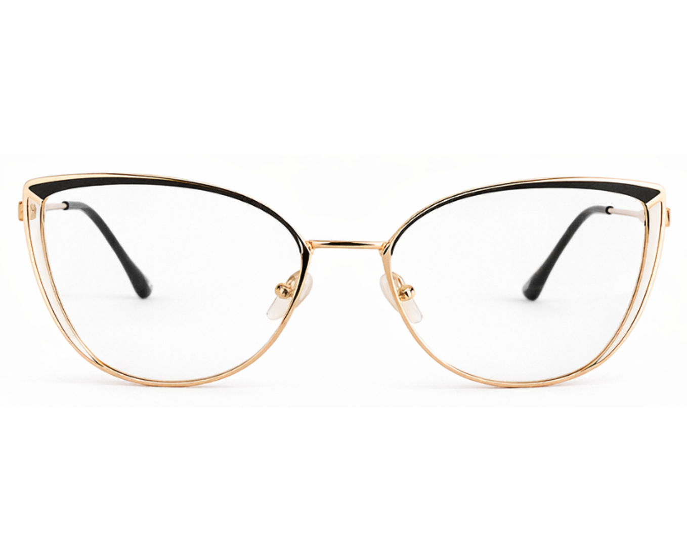 Armações femininas de metal, ideal para quem busca durabilidade e estilo. Compatível com lentes de grau, longe, perto ou multifocal, oferecendo versatilidade para diferentes necessidades visuais.