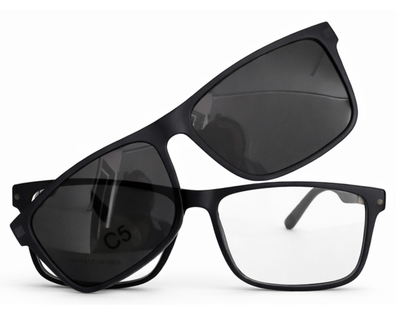 Armação clipon da Ótica Outlet transforma seus óculos comuns em óculos de sol com facilidade, ideal para lentes para longe, perto e multifocal.