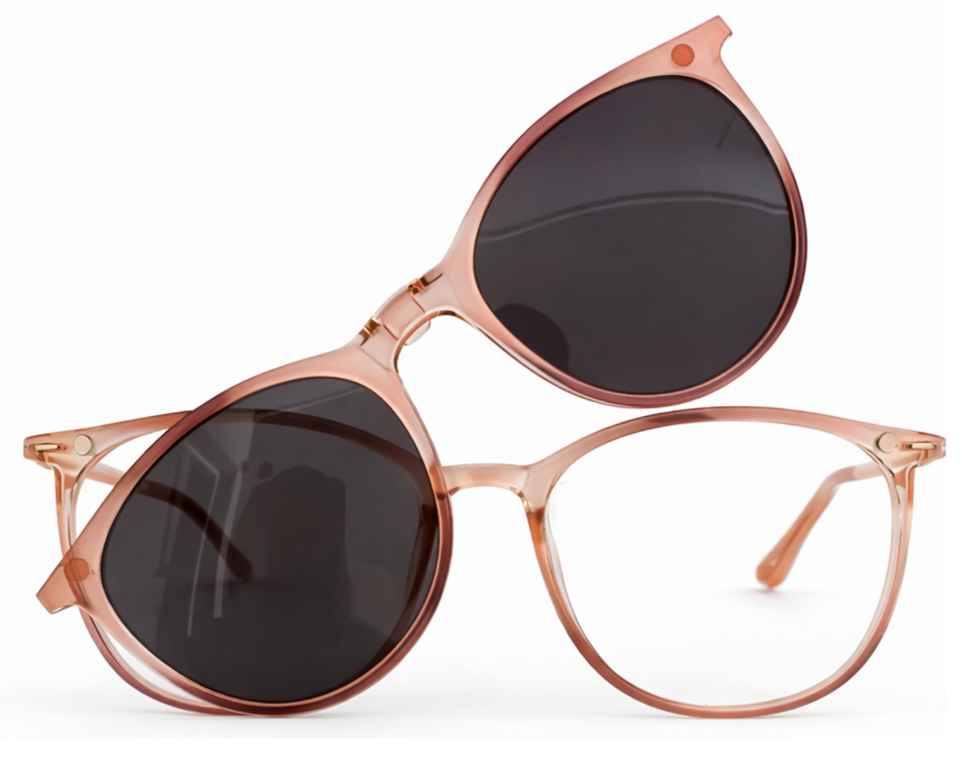 Armação clipon da Ótica Outlet transforma seus óculos comuns em óculos de sol com facilidade, ideal para lentes para longe, perto e multifocal.
